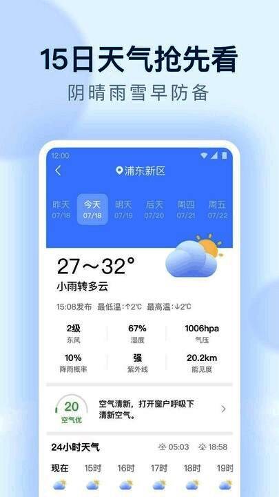 这款软件可以为用户提供24小时和未来15天的精确天气预报,让用户随时了解天气状况和生活指南,各种天气查询功能也更新非常技术,用户能够轻松了解全国各地的天气状况和旅游信息。