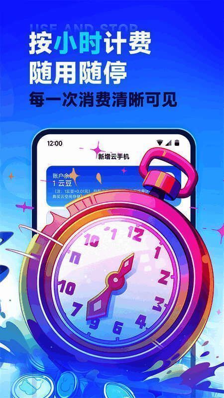 3.云手机原有的人性化小时计费模式可以随时暂停。云托管备份更安全,V bean充值更实惠。启动收费并立即关闭,这完全符合玩家的游戏时间,真正节省了时间和成本。