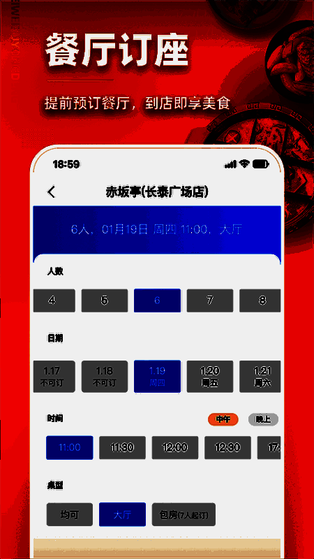 3.告别繁琐的电话预订流程,确保预订成功!约会?集团建设?生日派对告别繁琐的电话预订,使用美味的食物,无需等待应用程序一键预约,1秒内即可成功!