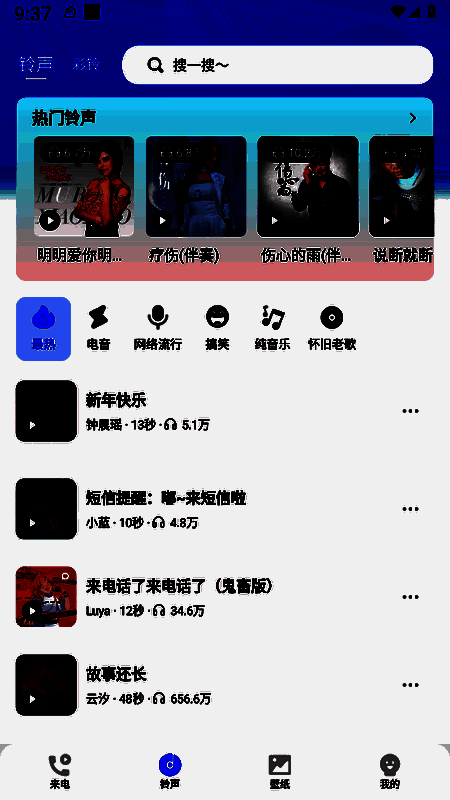 热门视频铃声素材:包括热门来电视频和热门来电铃声素材,提供多样化的选择,满足不同用户的个性化需求;