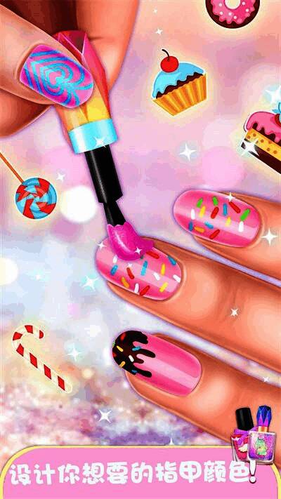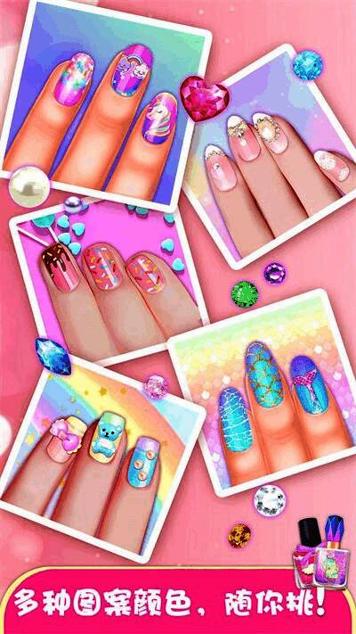 游戏采用卡通风格的画面设计,色彩明亮、角色可爱,营造出轻松愉悦的游戏氛围。无论是美甲图案还是服饰细节,都展现出极高的精致度。玩家可以在游戏中自由组合各种元素,从经典法式美甲到炫彩手绘,从宫廷风长裙到现代潮流装扮,每一种搭配都是独一无二的创意呈现。
