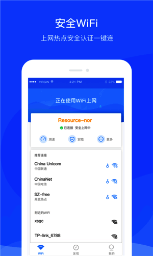 这款软件可以智能检测并连接到周围的WiFi热点,用户无需手动输入密码,可以会自动连接安全的WiFi网络,使用起来非常方便,还可以伴奏版用户轻松增强WiFi信号的稳定性和强度,让用户在上网时享受更流畅的体验。