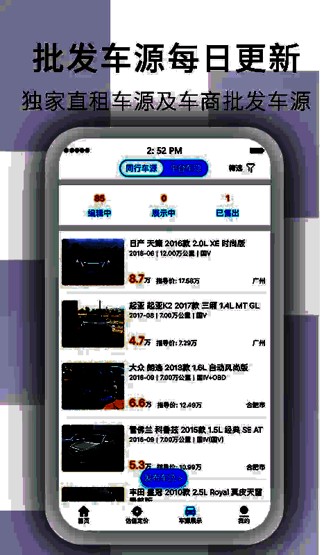 车e估商家版致力于服务二手车商,为他们提供便捷的评估工具。该应用集成了车源信息管理、在线评估、车辆采购等多项功能,帮助车商更高效地进行交易和管理。用户可以批量上传车辆图片,随时更新信息,通过贷款计算器、违章查询等小工具优化购车流程。这款应用为车商提供了全面的解决方案,让汽车交易变得更加简单方便,适合所有对二手车市场感兴趣的用户。辅助二手车商进行车辆评估、车辆管理、数据查询、车辆采购、车辆处置全流程,适合线下交易场景,让车辆交易更简单!