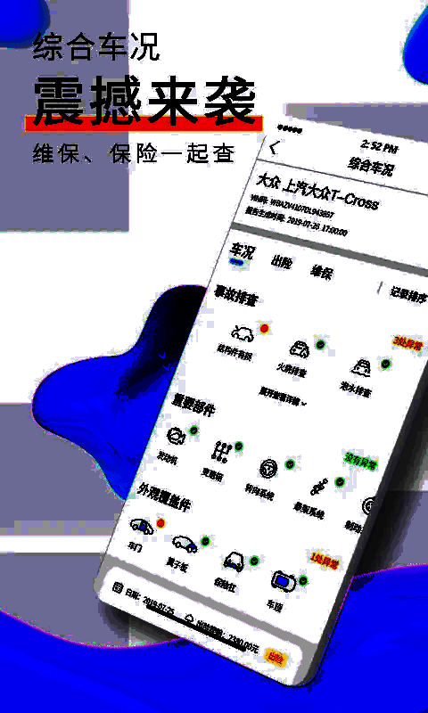 1.保养:查看车辆历史保养状况,查询品牌全面覆盖范围,掌握细节,不吃亏收车