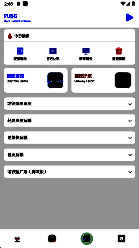 画质比例工具箱无任务是一款实用方便的图像质量辅助软件。画质比例工具箱无任务app中的所有画质修改项目都可以定制,主要是修改画质模式,使游戏运行更加流畅。支持优化的游戏种类繁多,一键式自动检测设备用于优化,防止游戏操作过程中的屏幕卡顿,远离各种卡顿和模糊,使玩家的视觉更清晰,所有图像质量优化功能都可以免费使用,还可以提高射击精度,帮助您顺利吃鸡!