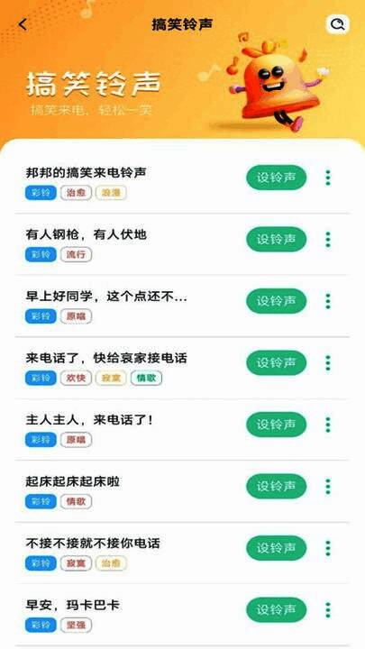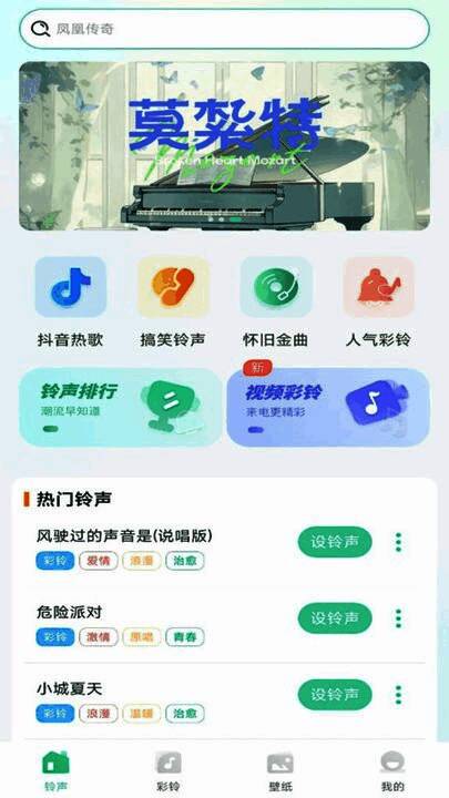 软件整体界面设计简洁直观,分类清晰,即使是首次使用的用户也能快速上手。所有铃声均可一键试听、下载并直接设为来电或通知音,整个过程无需复杂操作,真正做到了方便快捷。