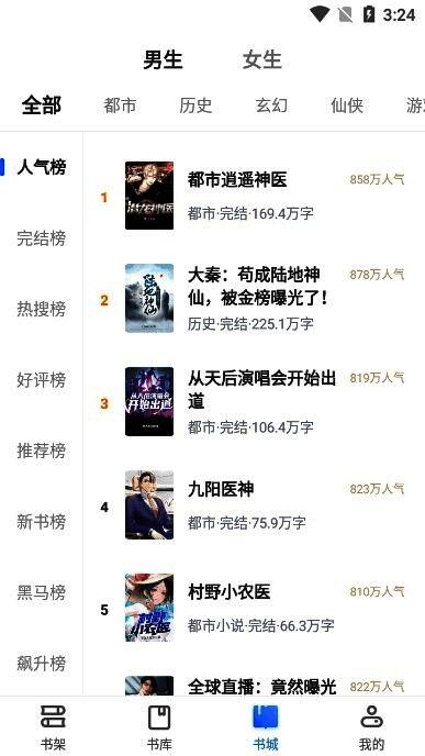用户可以在其上选择各种类型的小说,将图书数据添加到书架上,使搜索更方便,管理更自由。