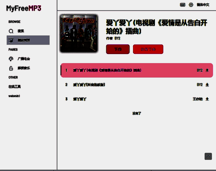 myfreemp3在线音乐官网免费是一款受欢迎的热门音乐播放软件,拥有丰富多样的音乐类型,可以自由为用户呈现很多高品质的音乐歌曲,还会实时更新热门音乐榜单,轻松查看最新最受欢迎的音乐歌曲,自由让用户免费播放感兴趣的音乐,给用户带来全面的听歌播放服务,还具有便携的搜索功能,可以直接输入音乐名称,歌手等来查找热门音乐,自由享受优质的播放体验,能完全满足用户的所有听歌需求,还支持下载热门音乐来听。