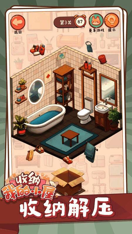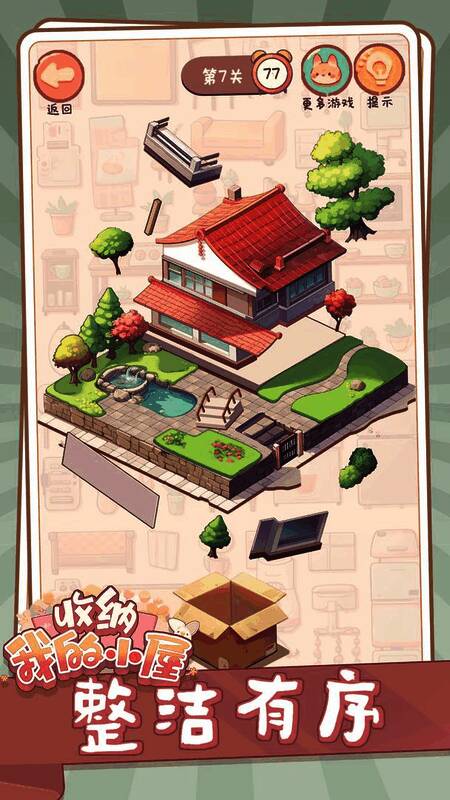 收纳我的小屋安卓版是一款趣味解压的休闲收纳整理游戏,拥有丰富多样的收纳整理关卡和场景,随时进行有趣的收纳对决,还可以自由学习各种收纳整理技巧,轻松完成每一关的收纳任务来获得奖励,自由感受趣味的收纳挑战和考验,还拥有各种游戏模式的选择,允许玩家在有限的时间灵活完成,轻松获得游戏胜利,还拥有各种道具的使用,可以帮助玩家顺利通关,自由获得游戏乐趣和成就,喜欢收纳游戏的玩家欢迎下载。