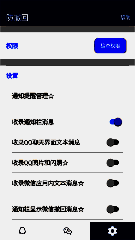 微信防撤回软件 官方版是一个非常可靠的反撤销应用软件。使用该软件时,可以及时提醒用户。功能展示完整,无需root查看取款短信神器。当有一条消息即将被撤回时,你再也不怕错过各种消息和图片了。可以快速撤回相关信息。在这里,你可以保存各种聊天内容,支持QQ和微信,有了它,每个人都可以看到和回复撤回的消息,甚至图片,不会错过任何消息。你再也不用担心别人撤消息了,特别有用。当然,如果你想让它一直开着,记得把它加入白名单。如果需要,还等什么?立即下载并体验!