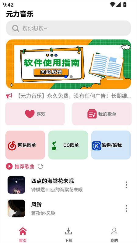 2、离线下载功能:支持将喜爱的音乐下载到本地,无需互联网即可欣赏音乐。