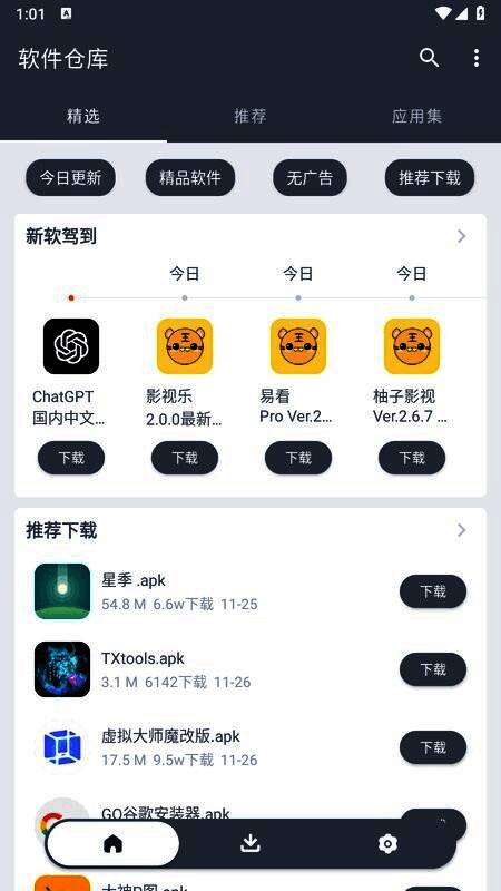软件仓库安卓版是一款受欢迎的免费软件下载助手,可以为用户提供丰富多样的软件应用资源,还收录各种安全的软件类型和榜单,随时让用户及时获取查看,轻松在里面找到很多优秀的软件,给用户带来全面的服务和体验,还集合了精选,推荐等功能,轻松让用户自由查看最新最受欢迎的软件应用,方便用户自由下载体验,能完全满足用户的使用需求,还具有智能搜索方式,可以轻松检索各种精彩的软件应用,有需求的用户欢迎来这里下载各类软件。