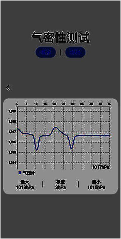 1、气密性测试:sam helper可暂停/启动(方便截图)、自动计算极差、显示最大/最小压力,从主页上方的图标或者关于手机界面右上角进入。