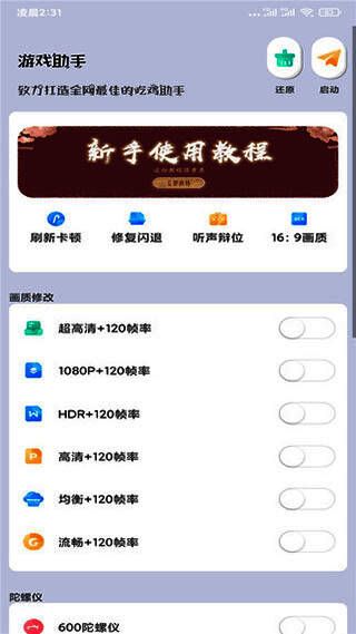 画质大师120帧2025最新版是一款专为PUBG玩家设计的图形优化工具!画质大师120帧2025最新版app旨在提高游戏图形和性能,以每秒120帧的速度兼容多个游戏,可以绕过制造商设定的限制,充分利用手机的性能,提高游戏操作的流畅性和图像质量呈现;功能强大,界面简洁明了,简单明了,没有广告,绿色软件,只需选择您的型号,就可以直接设置各种非常详细的数据;喜欢的用户快快下载了解吧!