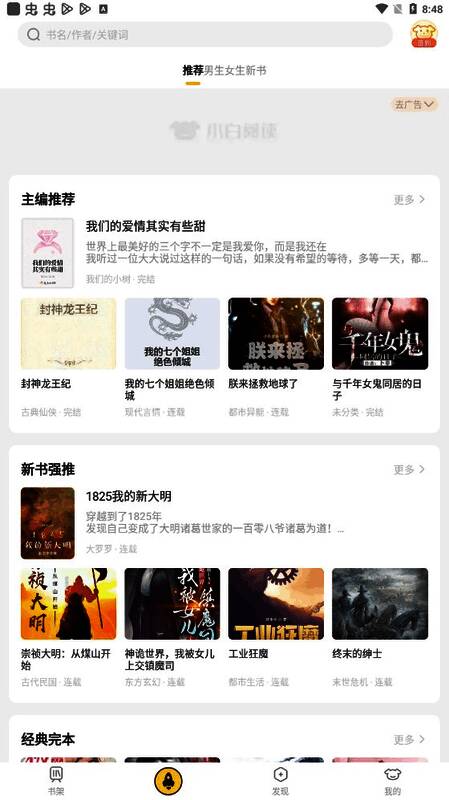 小白阅读在线阅读是一款可以轻松阅读精品小说的软件,可以为用户提供热门小说频道和榜单,随时让用户在线获取各种各样的小说书籍,还为用户整理了各种经典小说,完本小说等资源,可以在线阅读看书,给用户带来优秀的追书阅读之旅,同时该软件也具有简洁的小说阅读界面设计,允许用户轻松自由调整小说字体大小,阅读背景等,轻松阅读感兴趣的小说,能完全满足用户的所有阅读需求,还可以自由下载缓存热门小说书籍,随时随地自由看书。