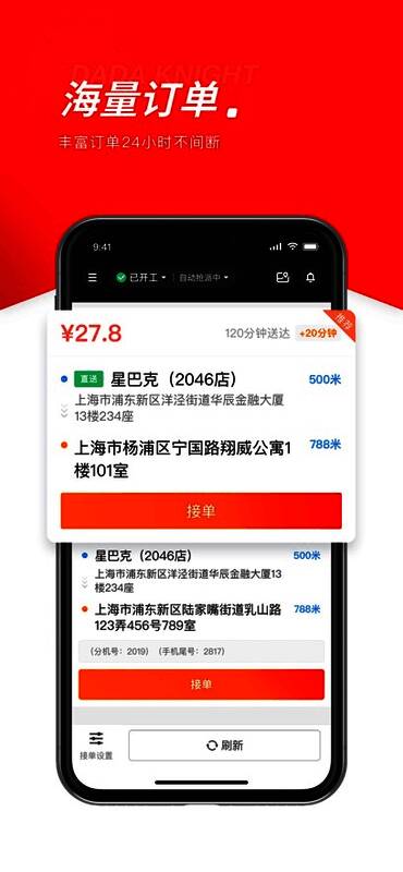 达达秒送骑士官方版是一款专为骑士设计的便捷在线接单软件。传统的送货员和配送员都是受制于商家的,而达达把送货员和商家分开了,所以达达更加自由,可以给用户更多的权益保障。