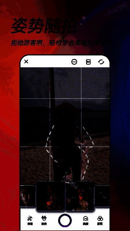 美姿相机安卓版不仅提供了全面的拍摄模式,如延时摄影、人像模式、夜景拍摄等,还支持多场景拍照,帮助用户轻松记录生活中的每一个精彩瞬间。此外,用户可以自由使用各类滤镜、特效以及贴纸素材,为照片增添独特的风格与个性。