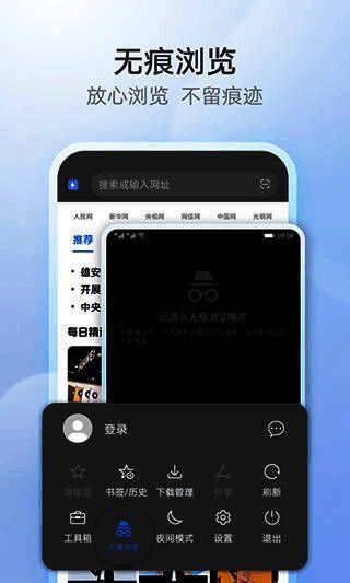 2、花瓣浏览器应用内置夜间模式,保护用户视力,同时降低手机功耗,更环保节能。