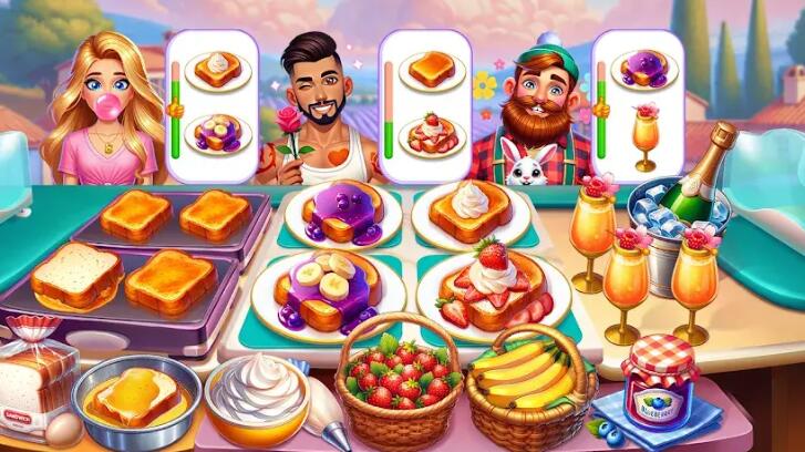 4、游戏里可能需要应对突发事件如处理厨房设备故障、食材短缺等紧急情况,保持餐厅运营顺畅。