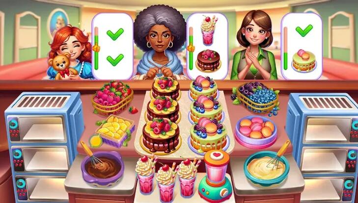 2、游戏具有升级与装饰系统,玩家需通过赚取金币升级厨房设备,装饰餐厅,吸引更多顾客;