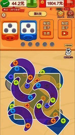4.根据关卡中螺丝的分布,选择合适的顺序拆卸螺丝,逐步解决螺丝难题,完成关卡挑战,并领取丰厚的红包。