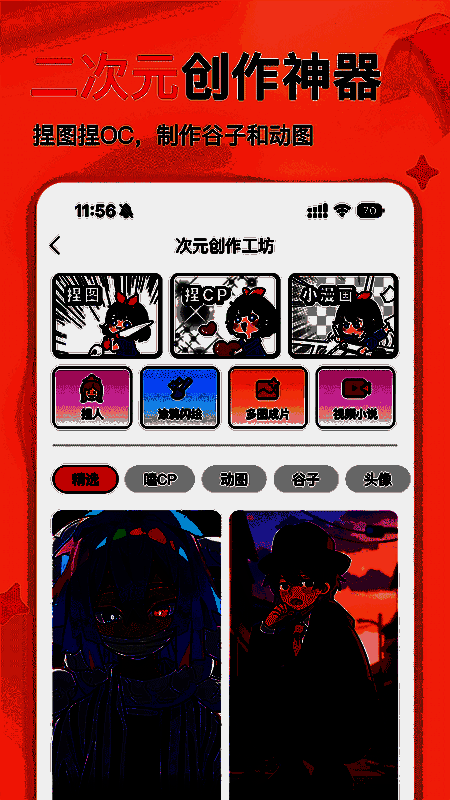 1.快速自由地制作人物/OC的壁纸、头像、茎图、漫画书、动画视频等,还有更多的“组合技巧”等着你去探索!