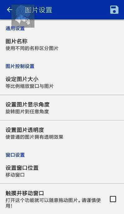 悬浮图片 软件app是一种功能,支持将图片悬浮在桌面上,美化手机的桌面屏幕,定制启动系统,并在启动时自动启动。同时,它还支持各种图片格式,使其更易于使用和操作。窗口具有透明背景,可以放置透明图片而不妨碍正常的触摸操作。软件的所有图片数据都放置在存储目录中的文件夹中。