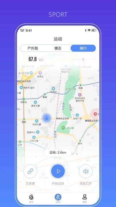 5、在运动过程中,开启语音播报,会为用户实时进行导航和播报目标进度