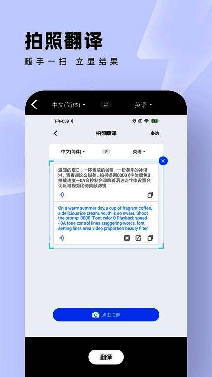 2.图像翻译:还支持图像中的文本翻译。用户可以拍照或上传图片,软件会自动识别并翻译其中的文字内容;