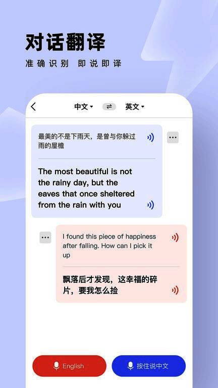 3.快速响应:该软件具有极快的响应速度。用户输入文字或语音后,立即显示翻译结果,没有任何延迟或延迟。