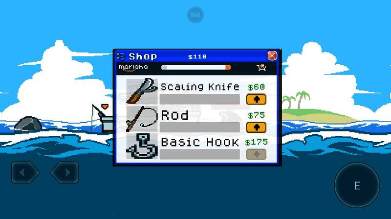 4、使用右上角的按钮进入商店购买和升级您的刀、鱼线和鱼钩。