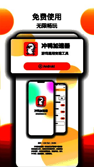 冲鸭变速器 无广加速版是一款游戏加速器应用,可以一键加速网络,减少在玩游戏过程中出现掉线和卡顿的问题。操作非常简单,你的游戏是一个很好的帮手。一键免费玩!专业的手游加速器,在玩热门游戏时,你有最终决定权来加速和减速,玩游戏时一定要有乐趣!可以快速为用户跳过游戏故事,直接玩各种游戏。有了这个软件,用户无法关注复杂的故事,所以下载并快速体验。
