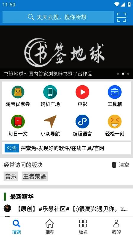 3、多个板块轻松选择,快速搜索感兴趣内容