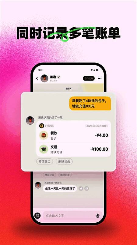3、[簿记]记账时,通过语音或文字说出消费,就可以自动计算记账。