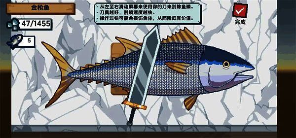 5、刮完鱼鳞后,可直接将鱼投喂给海上的乌龟顾客,待它吃完后会吐出金币;