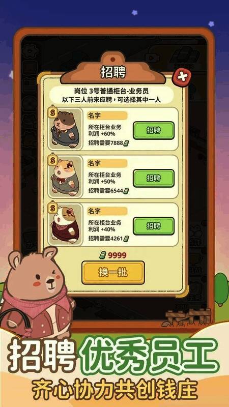 动物钱庄是一款金融商业管理游戏!动物钱庄游戏中玩家将扮演动物城一家新银行的老板,并通过资源分配、风险管理和客户服务将一家旧银行升级为金融帝国。该游戏融合了经济模拟、情节解谜和社交互动游戏,涵盖单人职业模式和在线贸易战,并使用3D卡通渲染技术创建动态生态城市。玩家需要平衡利润和声誉,应对股市波动和动物客户的个性化需求,同时还要应对城市背后的金融阴谋!