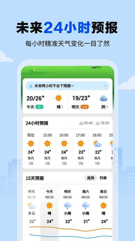 1.准确实时:该软件提供准确实时的天气预报,包括24小时天气预报,让用户提前了解温度变化;