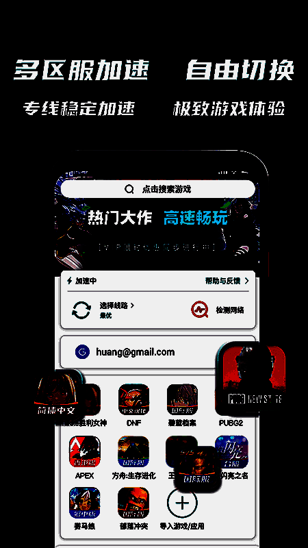 2、电竞级高速专线,双通道稳定加速,WIFI/移动网络智能切换,智能优选线路,降低延迟、断线重连、防止卡顿,让你享受高速稳定的游戏体验!