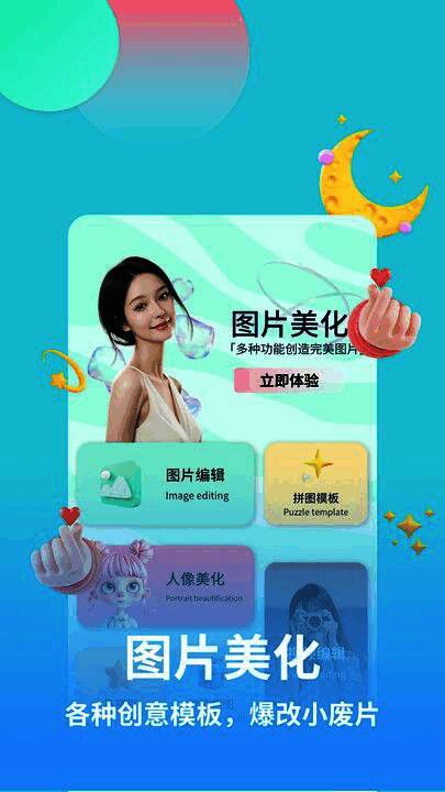 1.提供大量新模板和特效素材,及时更新,让用户随时拥有最新鲜的修图素材;
