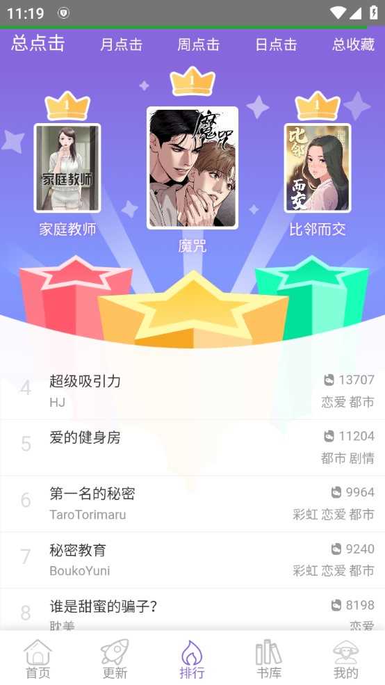 1、排名:本app提供漫画排名功能,展示热门漫画和热门作品,您可以快速了解当前热门漫画并进行阅读;