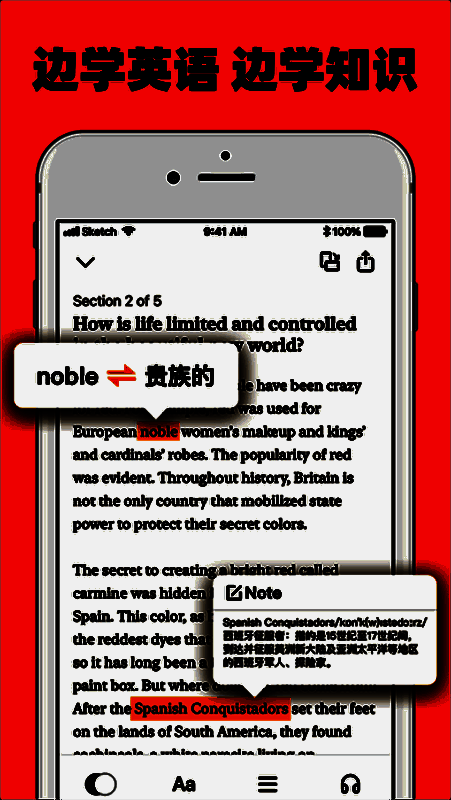 3、高效的学习工具:内置词汇列表、笔记功能、高亮工具,方便用户在阅读过程中积累词汇、整理思路。