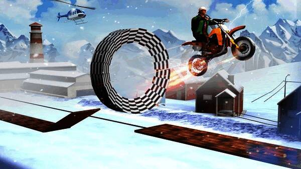 2、炫酷的特技动作,玩家可以在空中飞跃、翻转和做出多种特技动作,展现自己独特的摩托车技术;