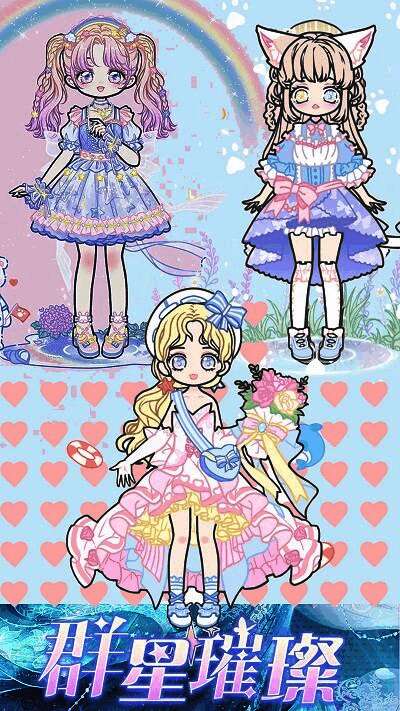 2、丰富的服饰和配件:提供各种甜美、可爱的裙子、鞋子和配饰,玩家可以根据不同的主题进行搭配;