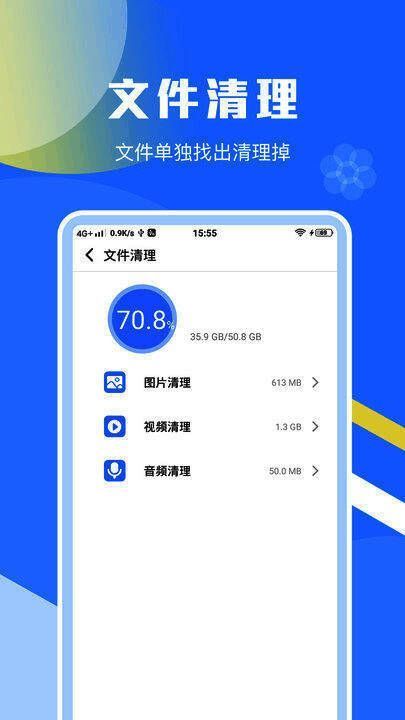 3.轻松清除手机缓存,快速清理垃圾,一键加速清理助手应用程序可以全面扫描手机,释放手机存储空间。