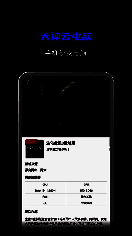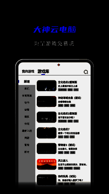 对于初次使用的玩家,操作也非常简单。首先,在官方渠道下载并安装《大神云电脑》APP;随后打开应用并同意用户政策条款;最后便可浏览游戏库,选择心仪作品进行排队连接云主机,正式开启你的云端游戏旅程。