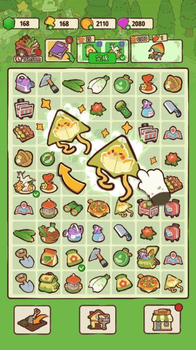 在关卡中,你需要找到相似的项目并将它们放在一起,以直接合成它们。