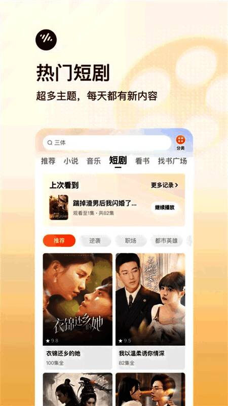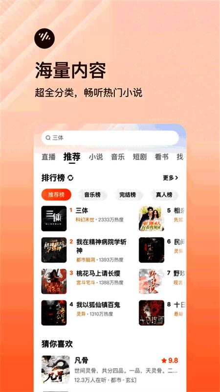 2.海量小说,免费听!都市文学、悬疑惊悚片、浪漫时光旅行、奇幻修炼、武侠世界超级综合分类,你想听的都有!