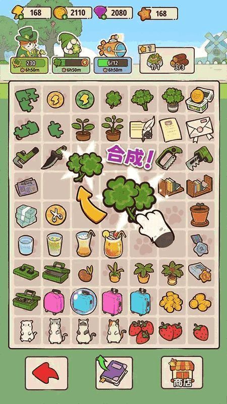 1、有趣的合成游戏:通过合并相同的物品来解锁高级工具、配料和装饰,例如用木制合成扳手修复庄园或用水果制作甜点来吸引猫。