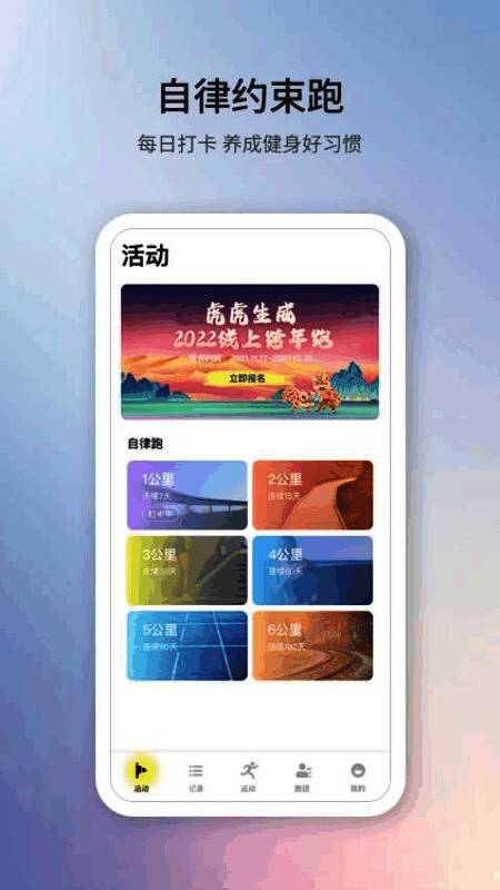 2、自律推广:推出自律跑步活动,用户可查看活动任务,及时参与,提高运动自律;