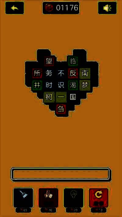 1、每个关卡提供一组零散的文字,玩家通过点击这些文字,组合成常见的成语;